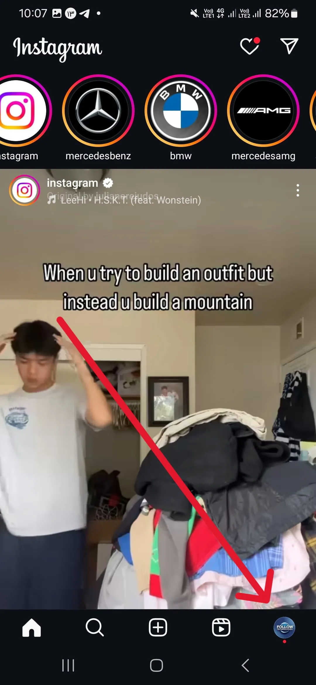 • First, log in to the Instagram app.