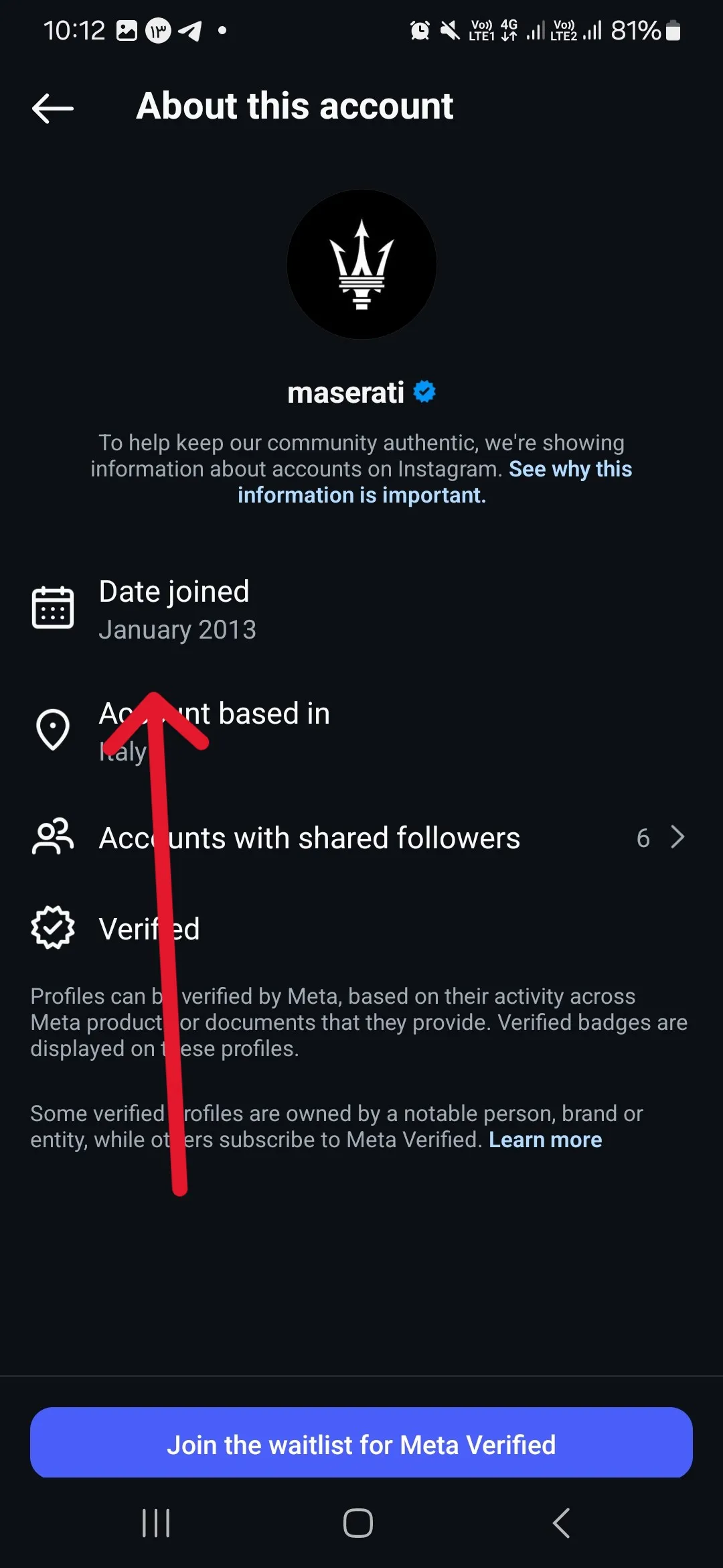 • On the new page that opens, you can find the Date this account joined Instagram. You can also discover the person’s location in the Account-based section, which will be based on the country.