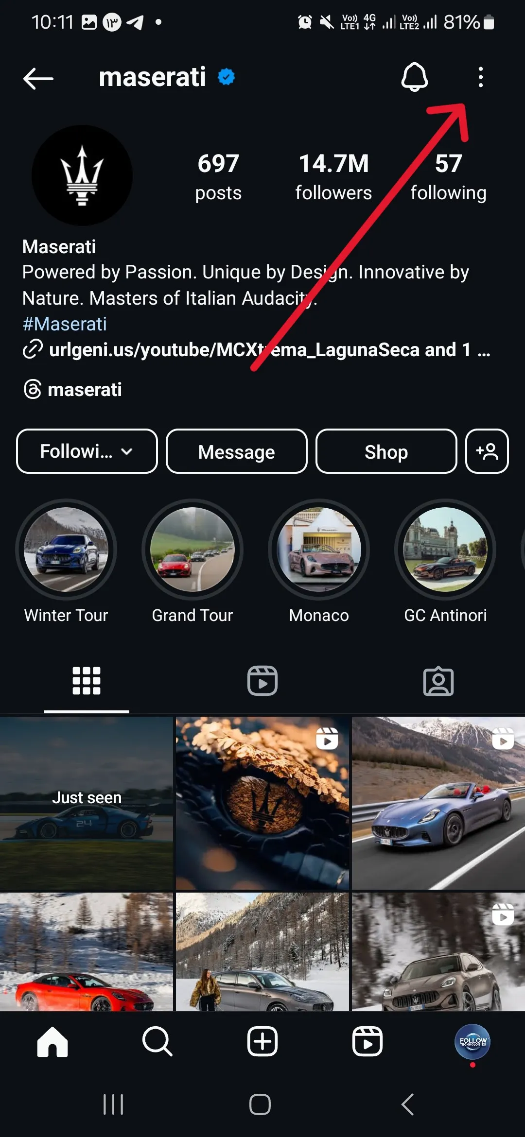 • Click on the three dots on the person’s profile at the top right of the page.