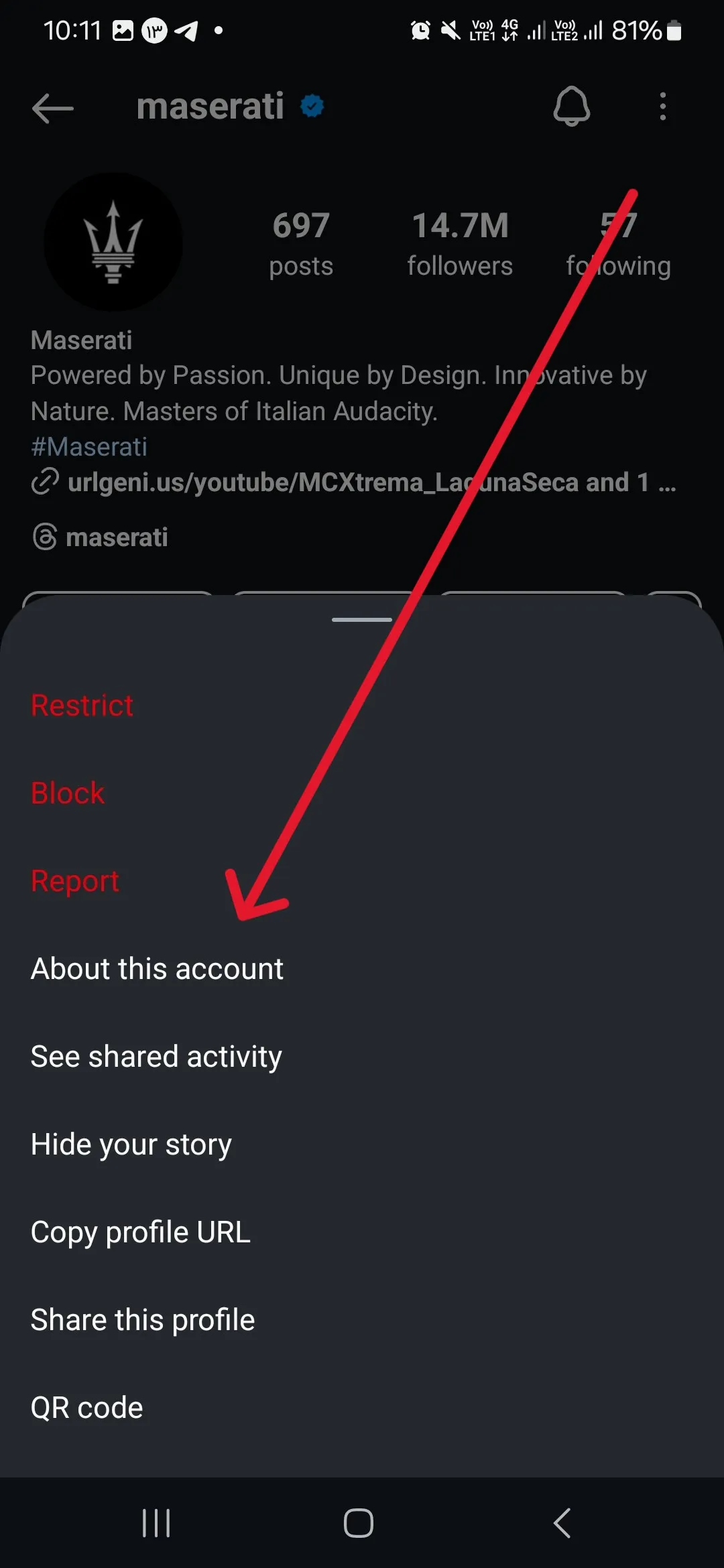 • By clicking this button, a menu will appear at the bottom of the screen. Click on the About this account option here.