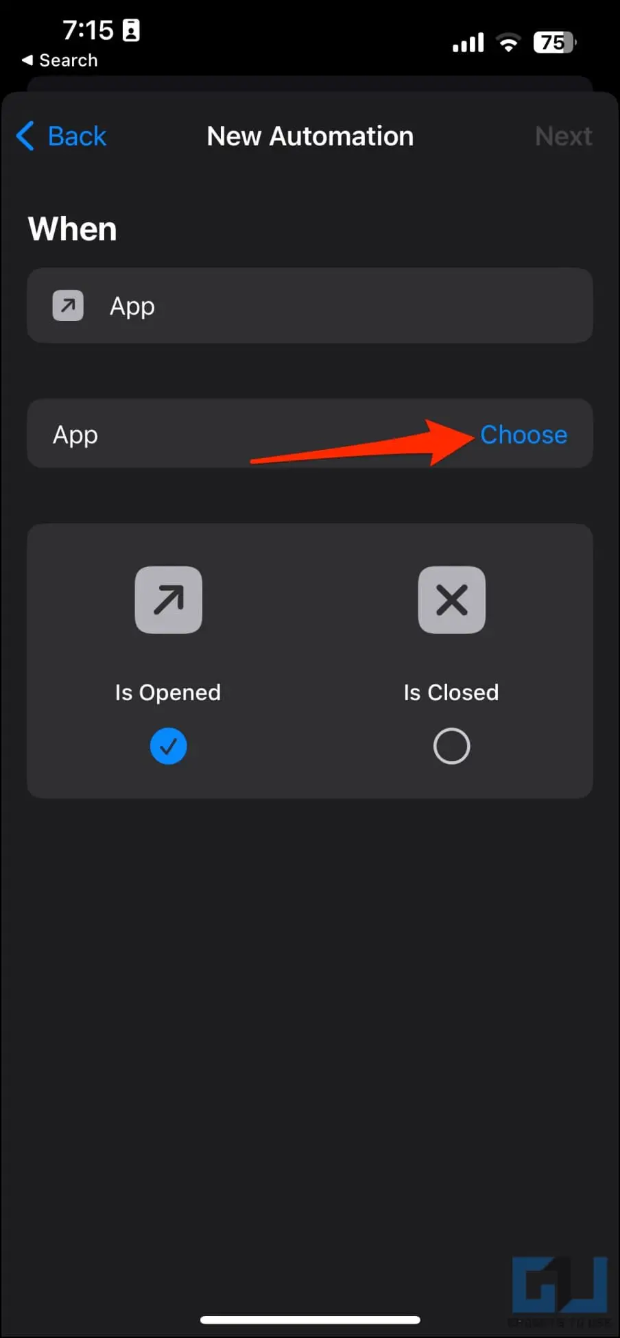 - Make sure the Is Opened and Run Immediately options are checked. Then tap Next in the top right corner.