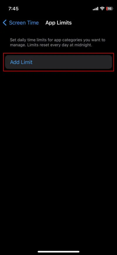 - Then, tap Add Limit and select the types of apps you want to lock. You can also restrict all apps installed on your iPhone by selecting the All apps & categories option.